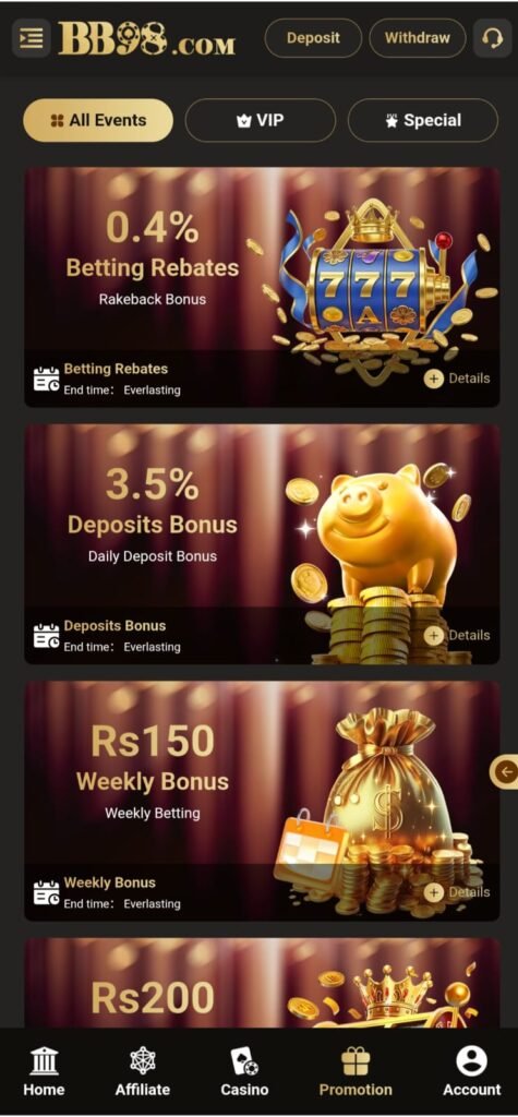 Bonuses are a major attraction for online casino players, and BB98 offers a variety of promotions to keep users engaged.